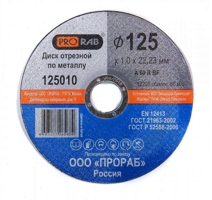 Купить отрезной диск по металлу PRORAB (Прораб) 125010 можно как за наличный, так и безналичный расчет.
