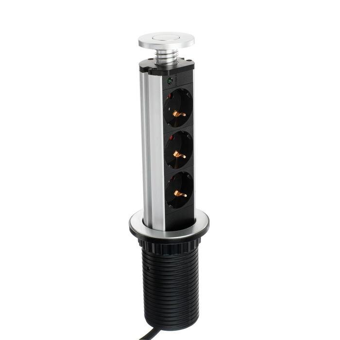 Розетка выдвижная, в стол, трёхместная, 16 А, провод 1,8 метра