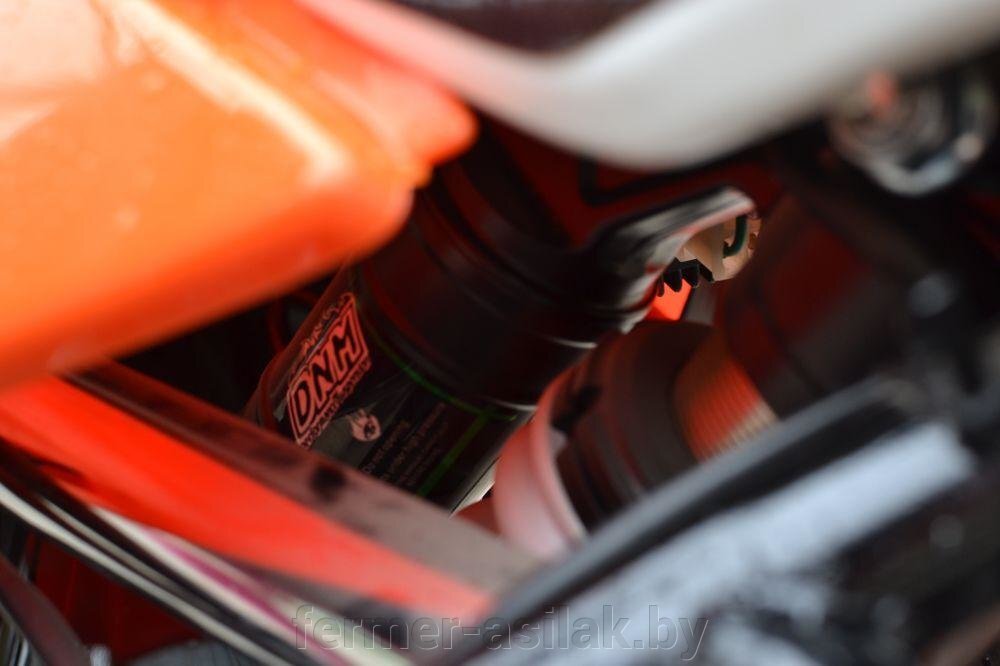• Задняя подвеска Гидравлический моноамортизатор с регулировкой воздушного клапана, жесткости и отбоя, ход 80 мм DNM (Тайвань)