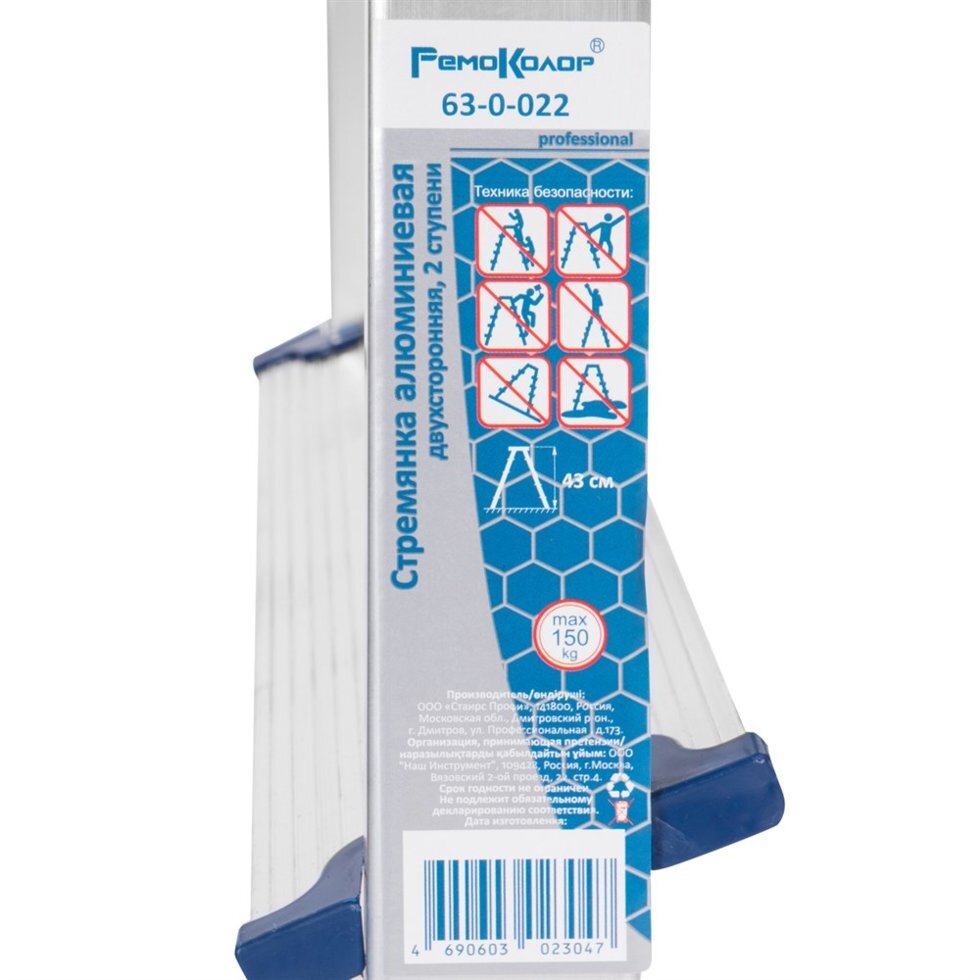 Стремянка алюминиевая двухсторонняя 2 ступени Ремоколор