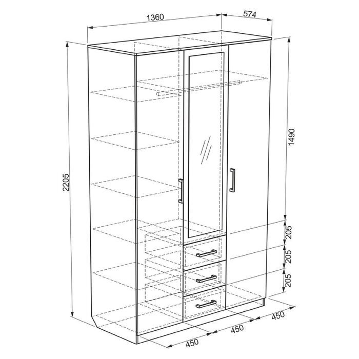 - Размер 220,5 см × 57,4 см × 21,1 см
