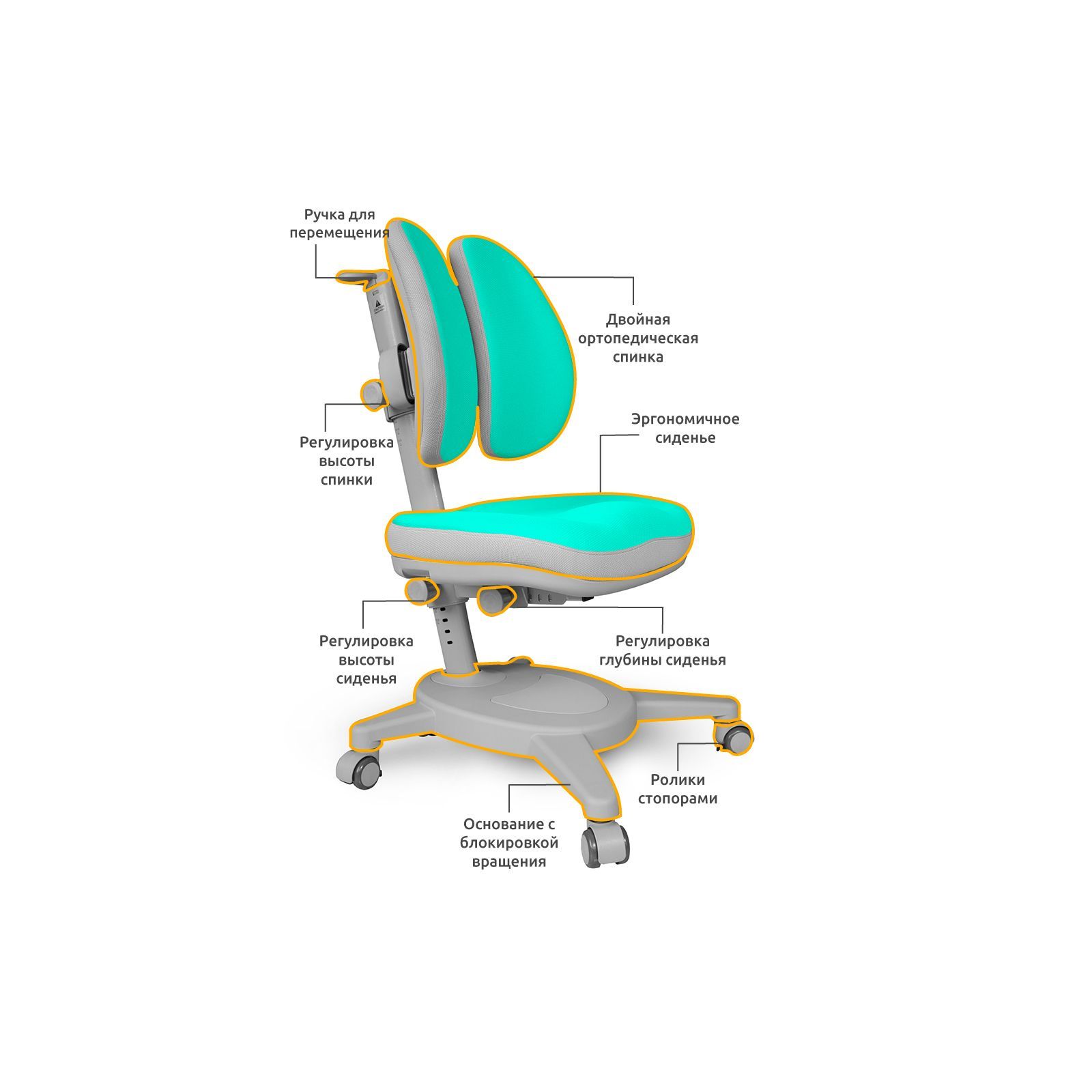 Стілець Mealux Onyx Duo з подвійною конструкцією спинки створює відмінну підтримку спини. Дитина буде сидіти комфортно, зможе краще концентрувати свою увагу, і заняття будуть проходити ефективніше. Можна точно настроїти для дитини потрібну глибину сидіння (є спеціальна "протисколіозна" виїмка на сидінні). Також регулюються незалежно один від одного висота спинки і висоти сидіння з допомогою затискачів. Стійка конструкція має широку основу з п'ятьма колесами. На трубі зверху розміщена ручка для зручного переміщення.