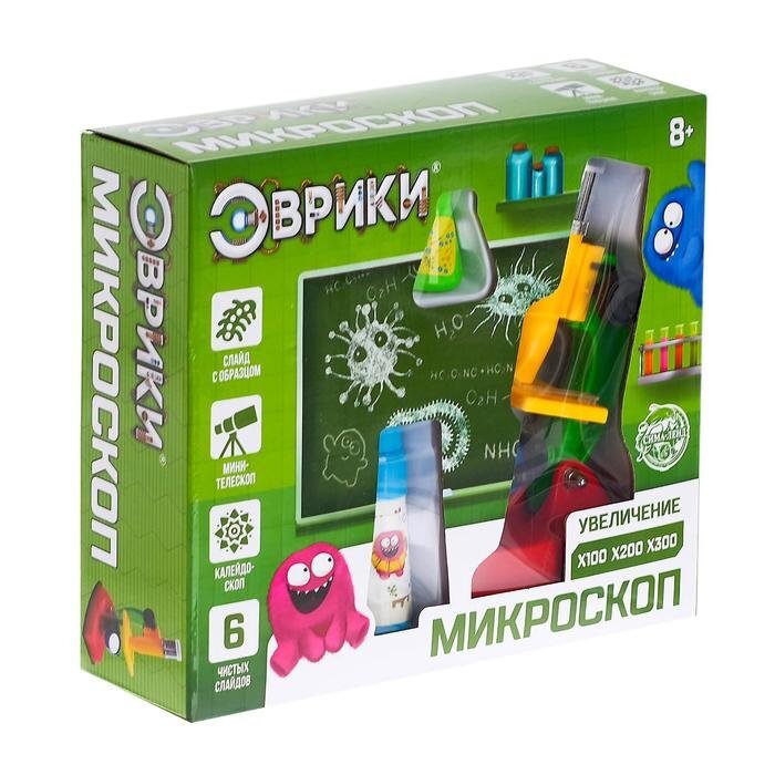 Набор биолога, 14 предметов: калейдоскоп, микроскоп, 4 слайда, 2 образца клеток, пинцет, нож, лопатка, игла, образцы