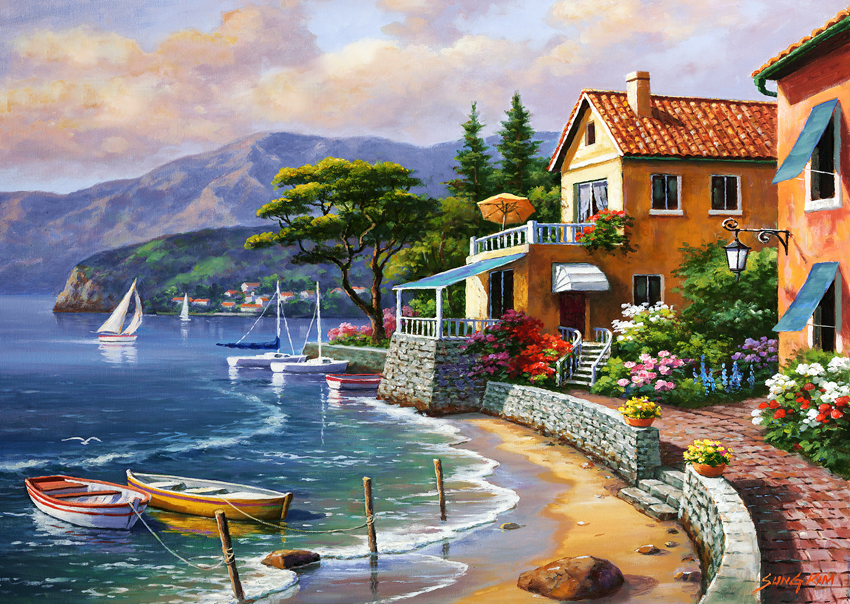Картина по номерам 30*40см . красивые дома в отражении озера. арт. х-7595