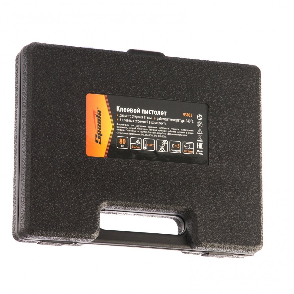 Клеевой пистолет с выключателем 12 мм в кейсе, 80 Вт, 6 г/мин Sparta