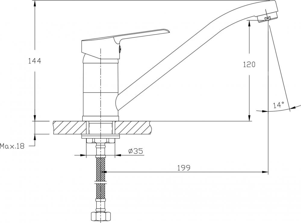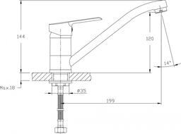- Длина излива 199 мм