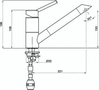 - Длина излива 221 мм