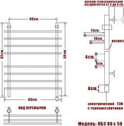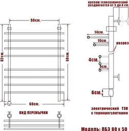 Полотенцесушитель Ника Bamboo ЛБ 3 электрический 80x53