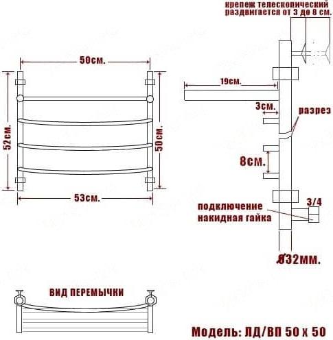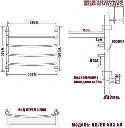 Полотенцесушитель Ника ARC ЛД ВП водяной 50x50 с полкой
