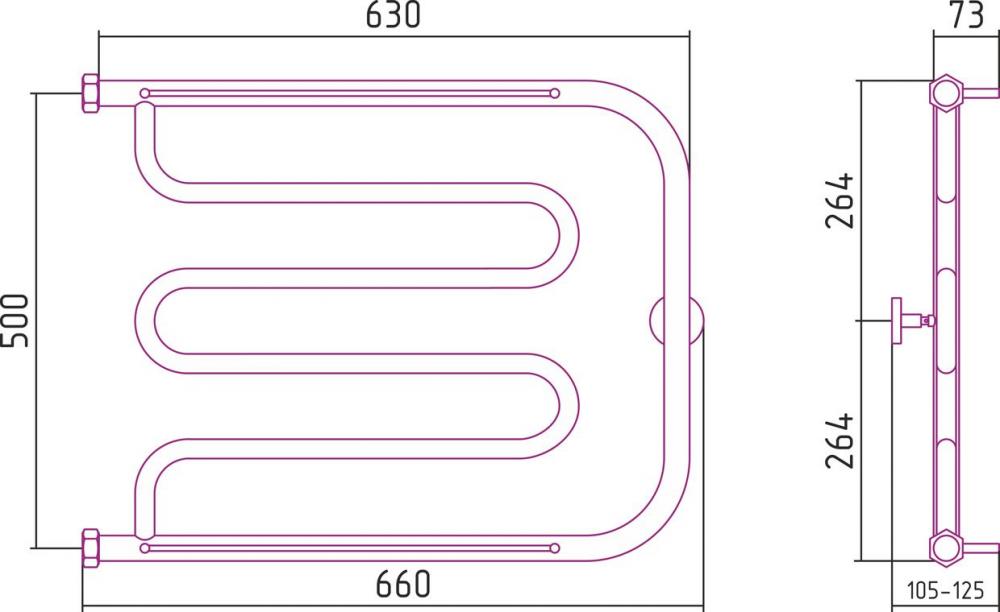 Полотенцесушитель Сунержа Лира водяной 65x50 с полкой