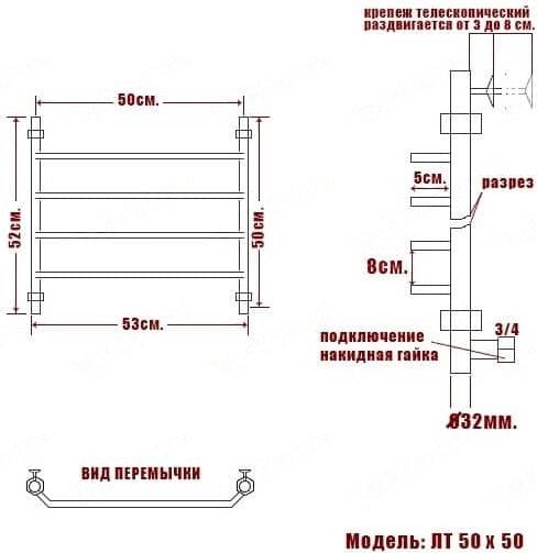Полотенцесушитель Ника Trapezium ЛТ водяной 50x50