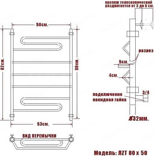 Полотенцесушитель Ника Curve ЛZT водяной 80x50