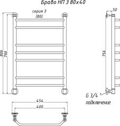 Полотенцесушитель Тругор ЛЦ серия 3 водяной 80x40