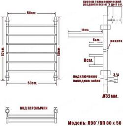 Полотенцесушитель Ника Quadro Л90 ВП водяной 80x50 с полкой