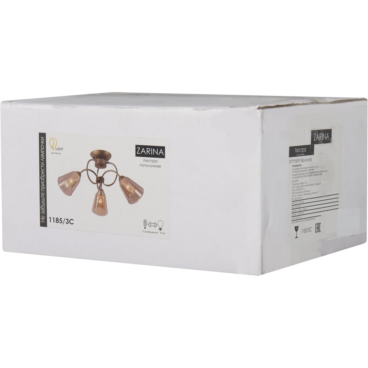 Люстра потолочная «Zarina» 1185/3C, 3хE27х60 Вт, цвет перламутр