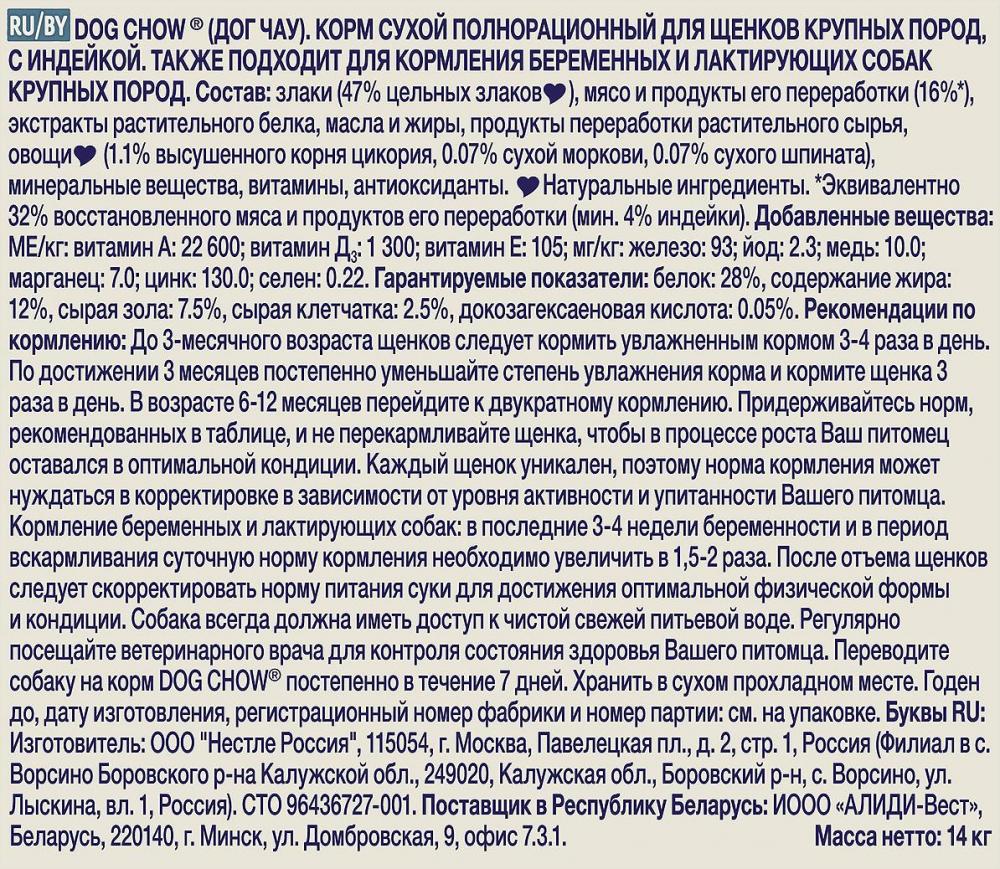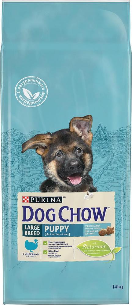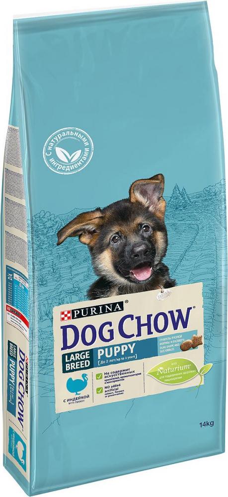 Dog Chow Корм сухой для щенков крупных пород, с индейкой, 14 кг
