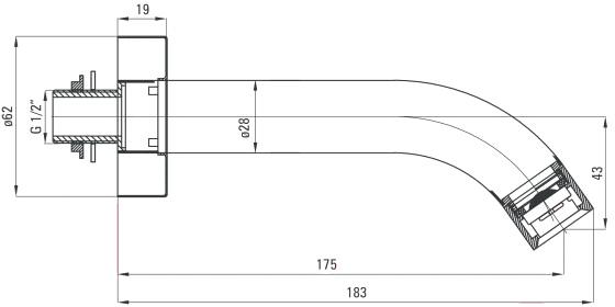 - Длина излива (вылет) 175 мм