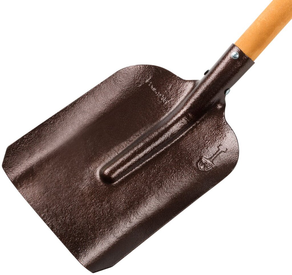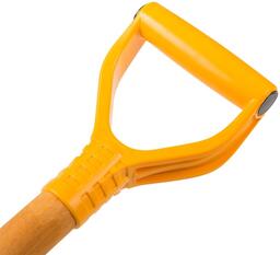 Лопата совковая, рельсовая сталь Р65 (М76), с деревянным черенком и V-ручкой "ПЗИ" 200х280х1420 мм