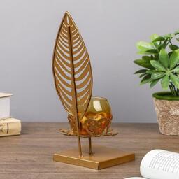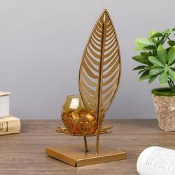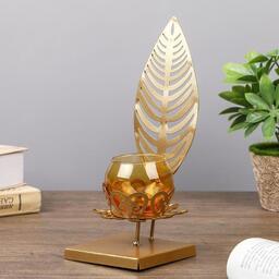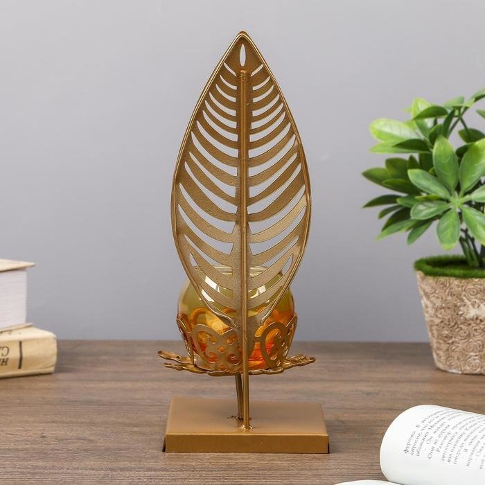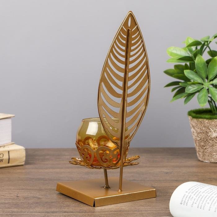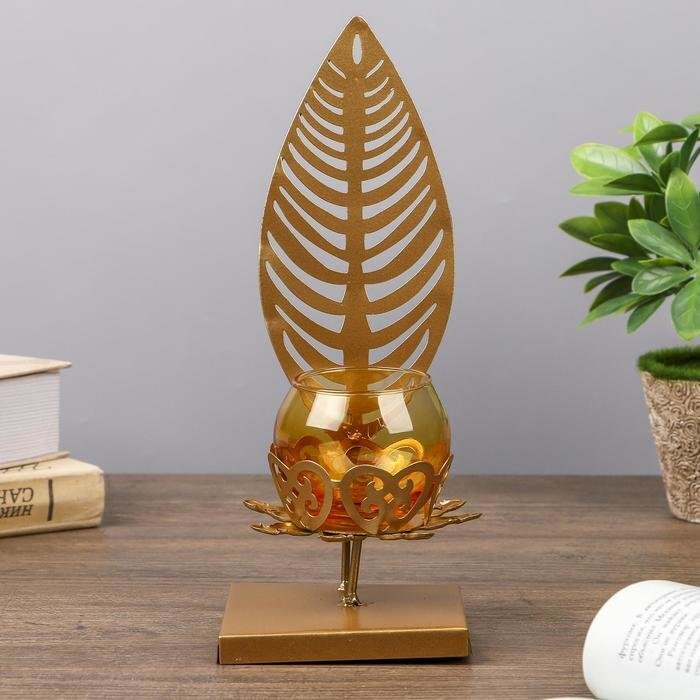 Подсвечник металл, стекло на 1 свечу "Пальмовый лист" золото 24х9х9 см