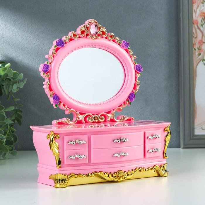 Шкатулка музыкальная механическая "Комод с зеркалом розовый"