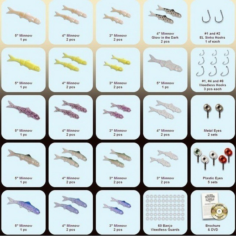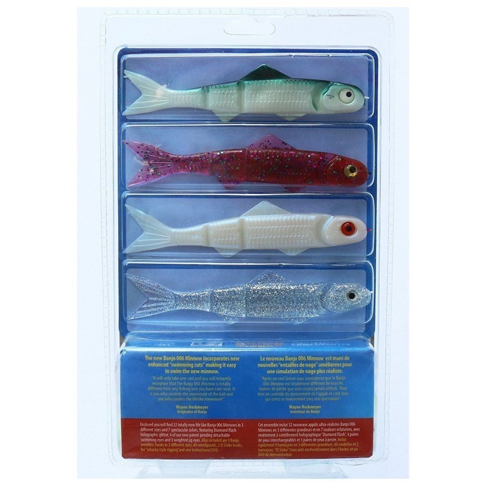 Набор приманок для ловли хищной рыбы - Banjo 006 Minnow, С имитацией движения раненых рыбок!