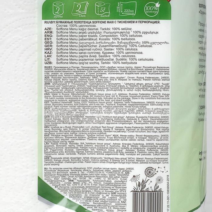 Полотенца бумажные Soffione Menu, 2 слоя, 2 рулона