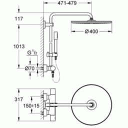 - Регулировка температуры воды термостат с предохранительным стопором при 38 °C