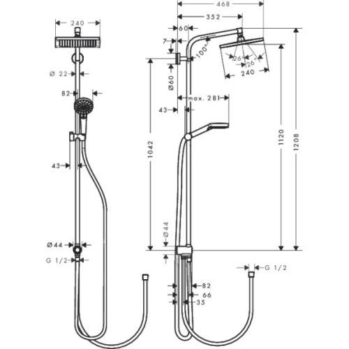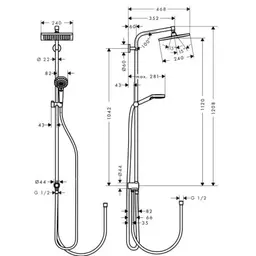 - Оснащение Подключение для душевого шланга, Штанга душевая, Душевая лейка, Держатель для душевой лейки, Душевой шланг, Кронштейн, Верхний душ