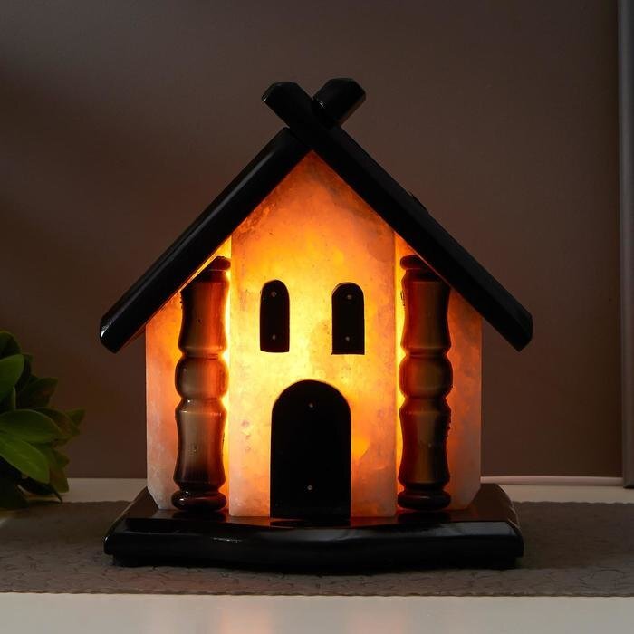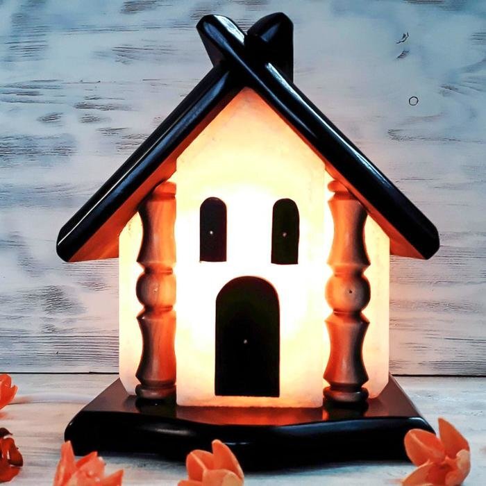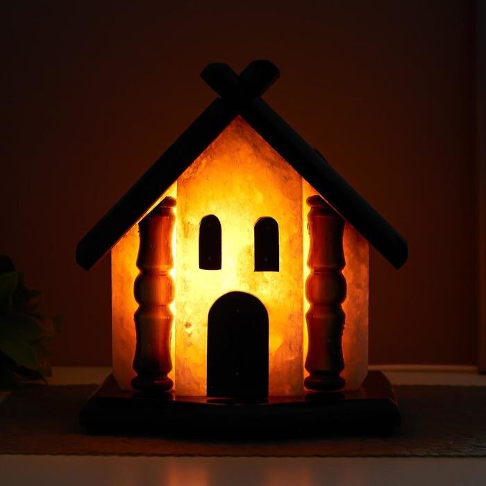 Соляной светильник с диммером "Домик" Е14 15Вт 4-6 кг белая соль 20х17х23 см