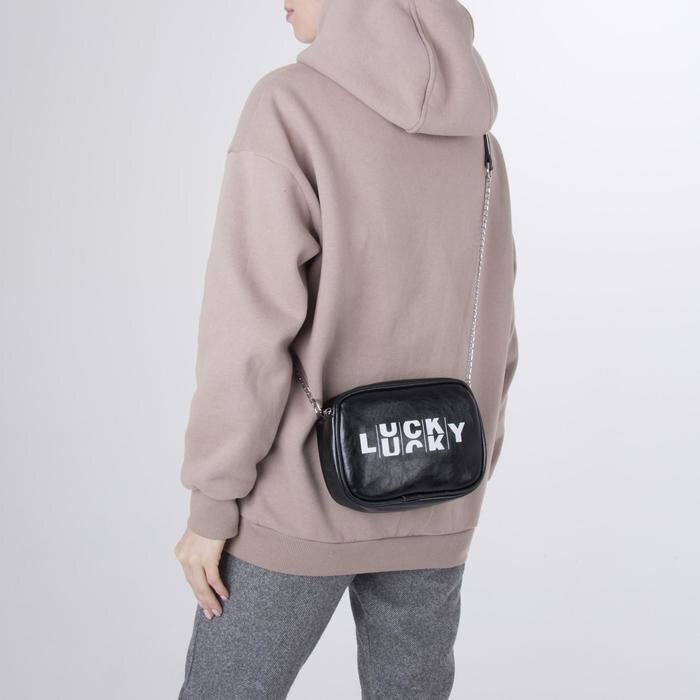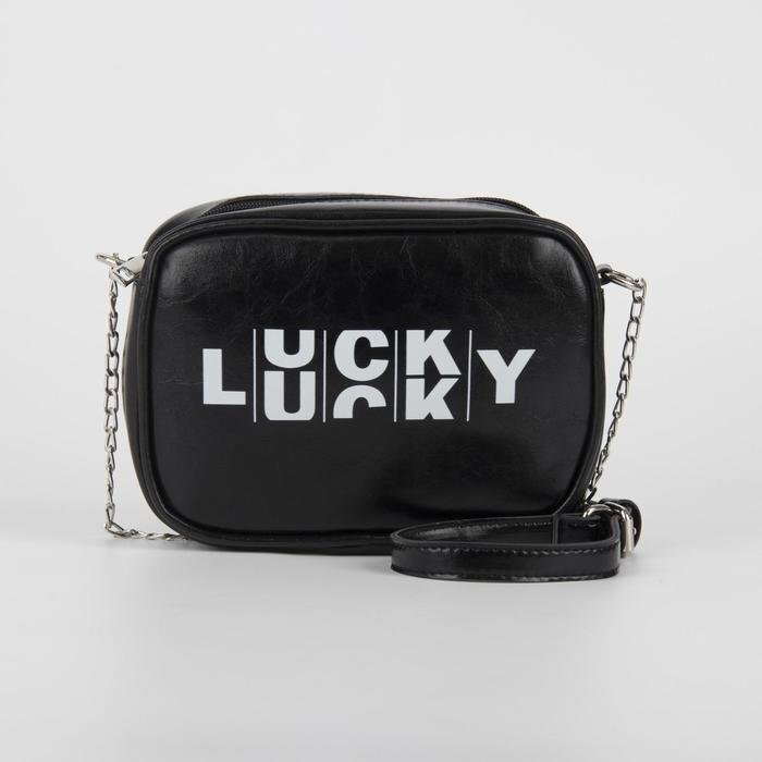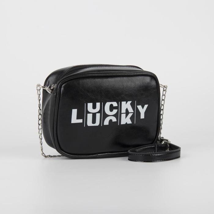 Сумка женская Lucky 19х6х14, отд на молнии, длин ремень цепочка, цвет чёрный