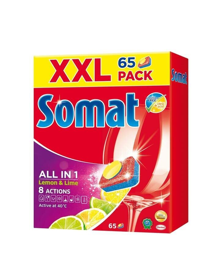 Средство для мытья посуды в посудомоечной машине Somat Лимон&Лайм, 65 таблеток