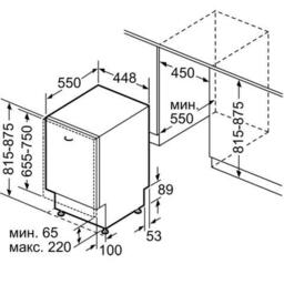 - Размеры для встраивания (ВхШхГ) 815-875 x 450 x 550 мм