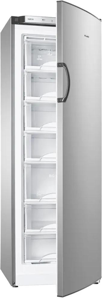 Морозильна камера ATLANT М 7204-161 - морозильна камера кольору Мокрий асфальт, на 7 відділень, в тому числі, корзина збільшеного обсягу BIG BOX. Функція швидкого заморожування включається механічно, відключається автоматично через 48 годин (або раніше повторним натисканням на кнопку).