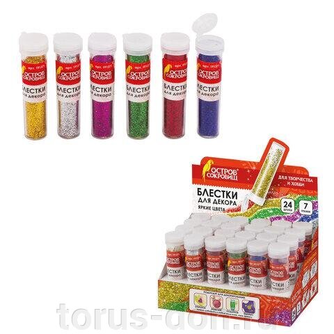 Блестки для декора (глиттер) ОСТРОВ СОКРОВИЩ, 7 грамм, цвета ассорти, в дисплее, 191371
