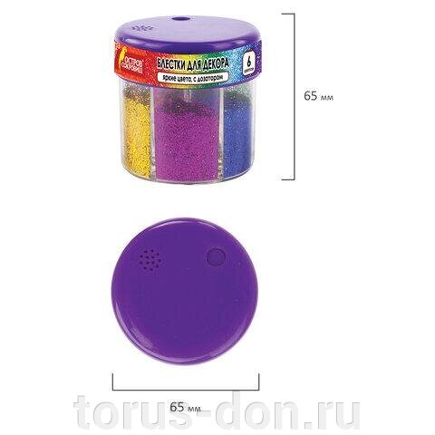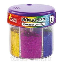 Блестки для декора (глиттер) ОСТРОВ СОКРОВИЩ, диспенсер с дозатором, 6 цветов по 10 грамм, 191372