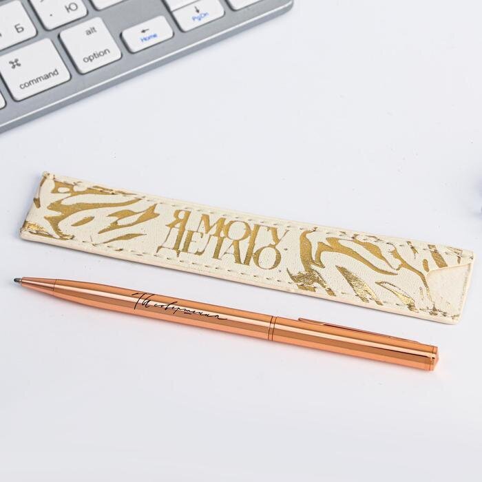 Подарочный набор ручка розовое золото и кожзам чехол "Я могу. Делаю"