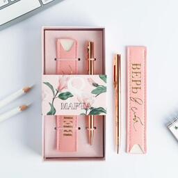 Подарочный набор ручка розовое золото и кожзам чехол "8 марта"