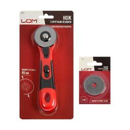 Дисковый нож LOM, пластиковый корпус, лезвие-ролик, 45 мм + ПОДАРОК лезвия-ролики - 3 шт.