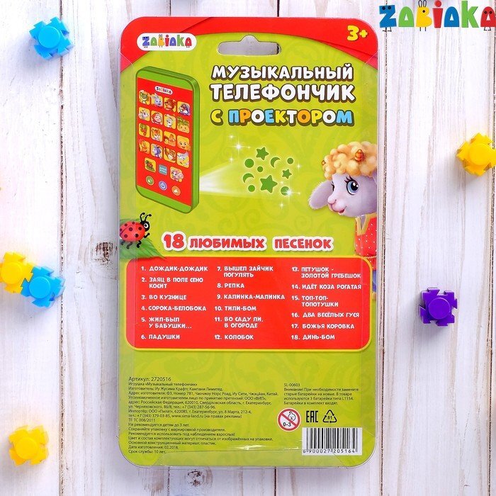 Телефон музыкальный «У бабушки» с проектором, звуковые эффекты, работает от батареек