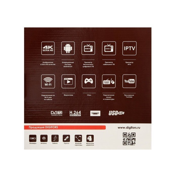4870452 Приставка смарт тв digifors smart 300, 1гб, 8гб, android, 4K, DVB-т2, wi-fi, hdmi, черная