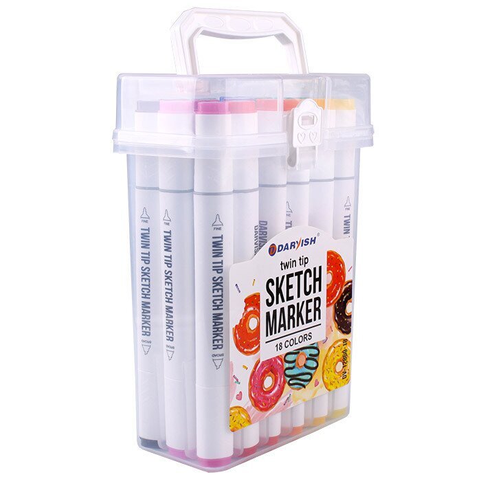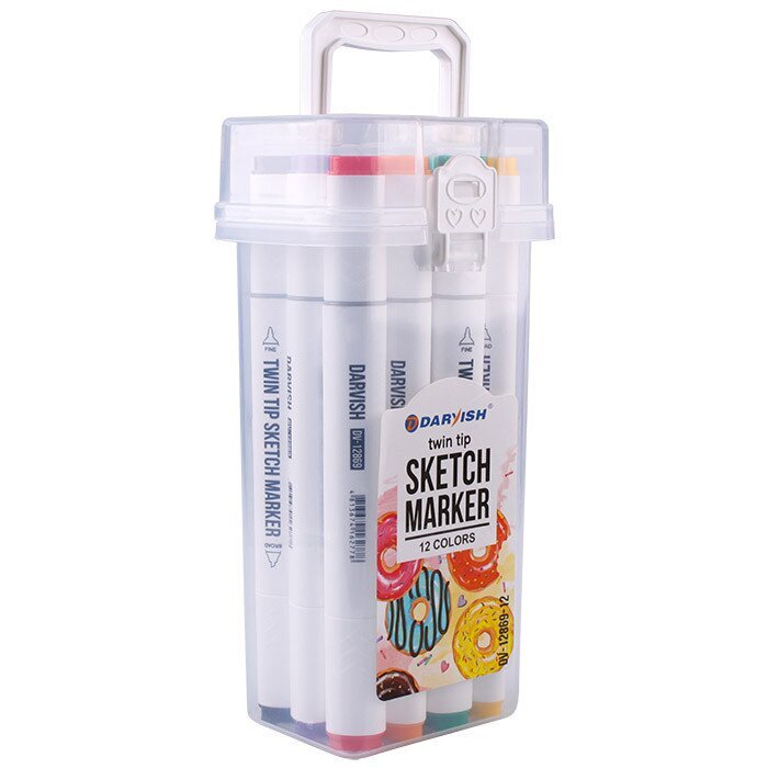 Маркеры для скетчинга двухсторонние в пластиковом чемоданчике (12/18/24/36/48/60 шт.) 60