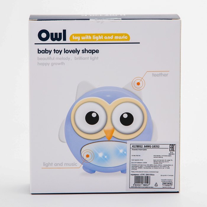Погремушка музыкальная «Филин», работает от батареек, цвет МИКС