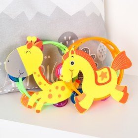 Погремушка музыкальная 'Жирафик/лошадка, бубен'виды МИКС
