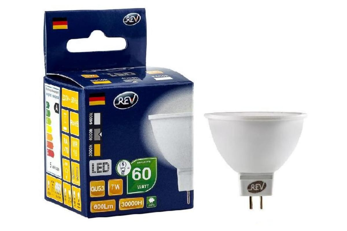 Светодиодная лампа LED MR16 GU5.3 7Вт 4000K REV 32325 9 оснащена цоколем GU5.3, что позволяет применять ее с декоративными точечными светильниками для освещения и выделения световым приемом отдельных зон интерьера. Светодиодный тип лампы существенно сокращает потребление электроэнергии - данная модель мощностью 7 Вт заменяет обычную ЛОН на 60 Вт.