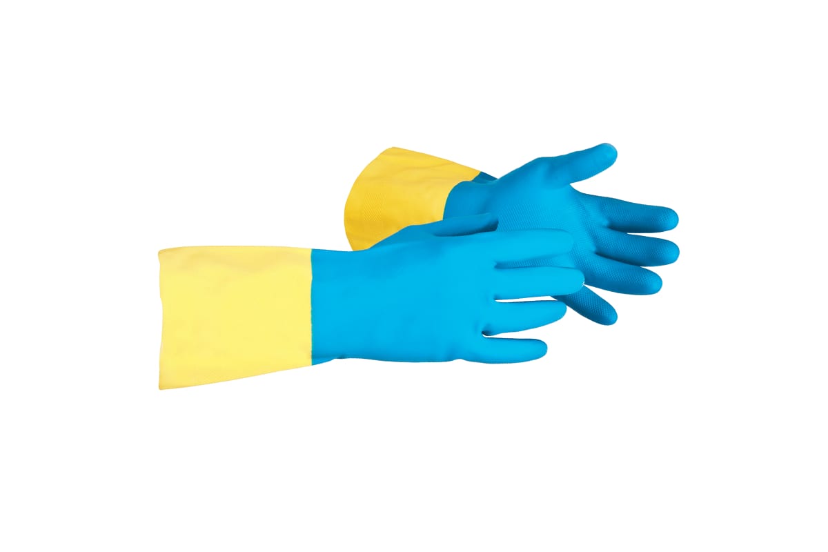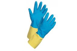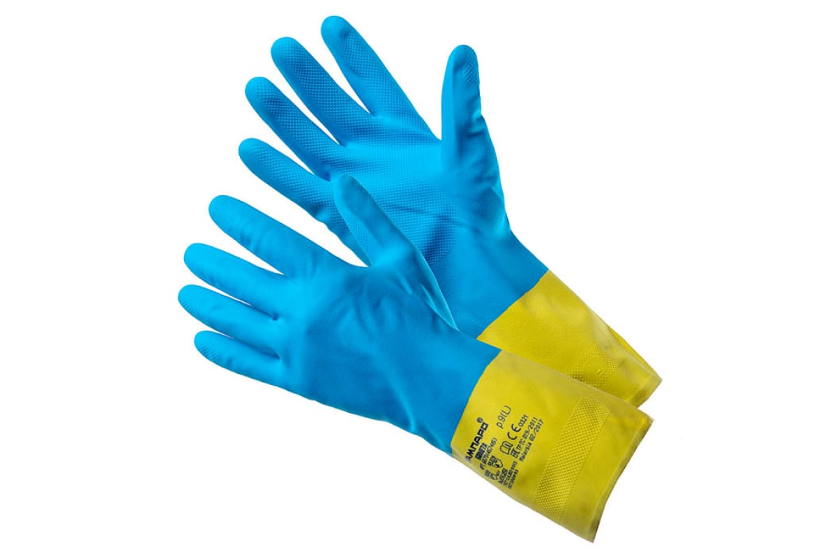 Неопреновые комбинированные перчатки Ампаро Комета, размер XL 6870.3 с внутренним антибактериальным хлопковым напылением применяются для защиты от воздействия растворов кислот, щелочей, красящих химических веществ, масел.