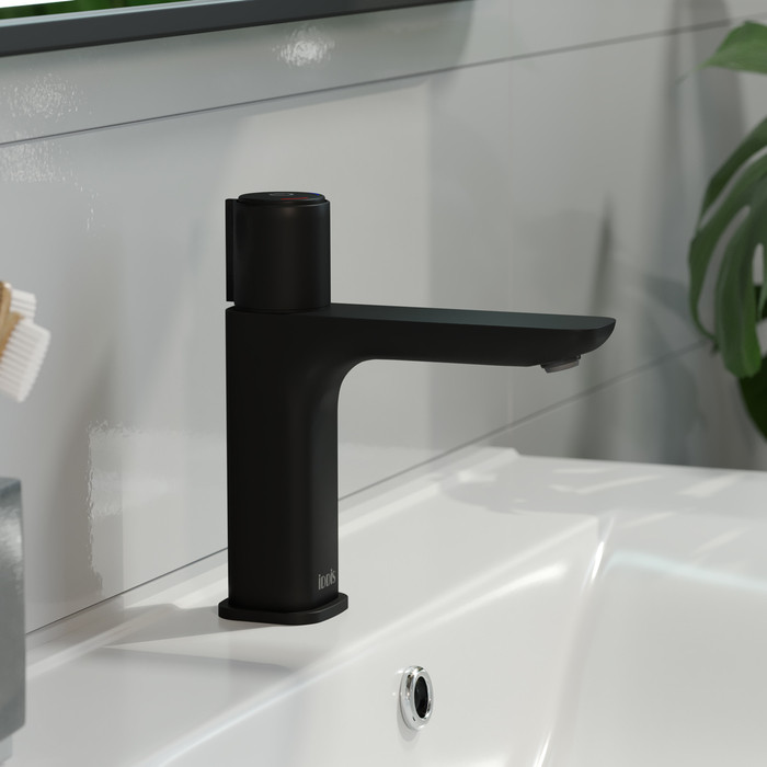 Смеситель для раковины Iddis Slide SLIBLBTi01 черный с кнопочным управлением