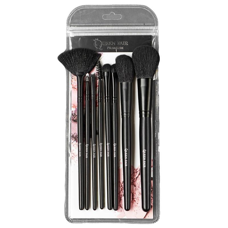 Набор кистей для макияжа Queen fair. Вид упаковки: ПВХ-пакет. Размер упаковки: 28×11×2 см. Состав: металл, натуральный волос, нейлон, пластик.В набор входят 8 предметов.1. Веерная кисть, для нанесения сухих текстур: пудра, румяна, хайлайтер, корректор. Материал: нейлон.2. Кисть для консилеров и корректоров (точечно), для помады и блеска. Материал: нейлон.3. Кисть для проработки бровей, жидкой подводки. Материал: нейлон.4. Кисть для бровей и ресниц. Материал: нейлон.5. Кисть для нанесения и растушёвки теней. Материал: ворс козы.6. Кисть для нанесения и растушёвки теней. Материал: ворс козы.7. Скругленная кисть, для нанесения сухих текстур: пудра, румяна, хайлайтер, корректор. Материал: ворс козы.8. Скошенная кисть, для нанесения сухих текстур: пудра, румяна, хайлайтер, корректор. Материал: ворс козы.