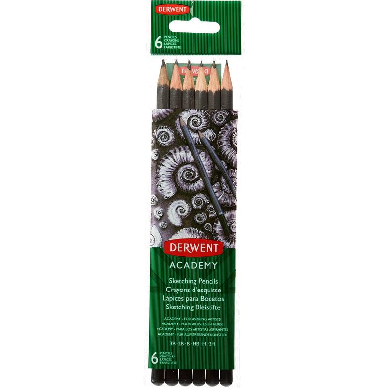 Набор карандашей чернографитных Derwent Academy Sketching Hang Pack 6 штук.В наборе карандаши различных степеней твердости: 3B, 2B, B, HB, H, 2H.