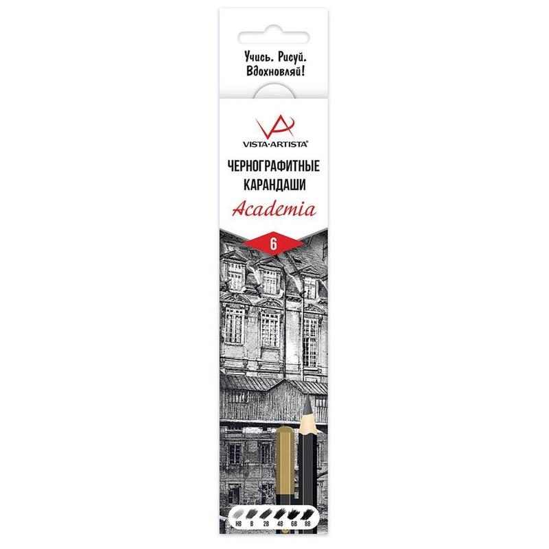 Набор чернографитных карандашей ВКФ Academia НВ-8B заточенные (6 штук в упаковке)