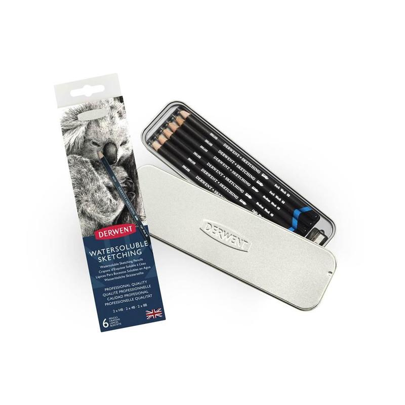 Набор чернографитных водорастворимых карандашей Sketching 6 штук с точилкой в металлической упаковке.В наборе:- 2 карандаша HB;- 2 карандаша 4B;- 2 карандаша 8B.
